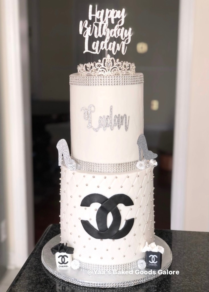 6” + 8” 2 tier Vanilla and Red velvet Chanel themed birthday cake