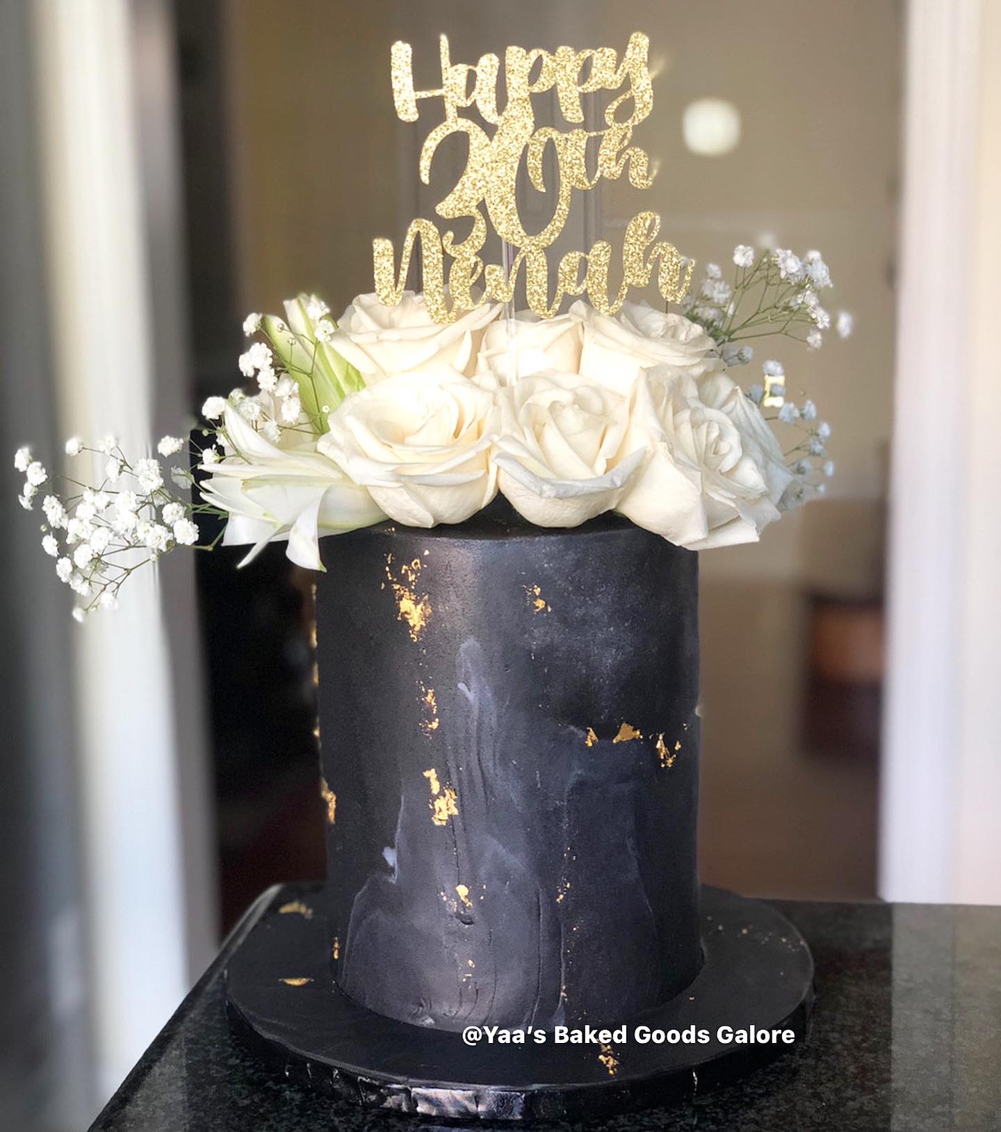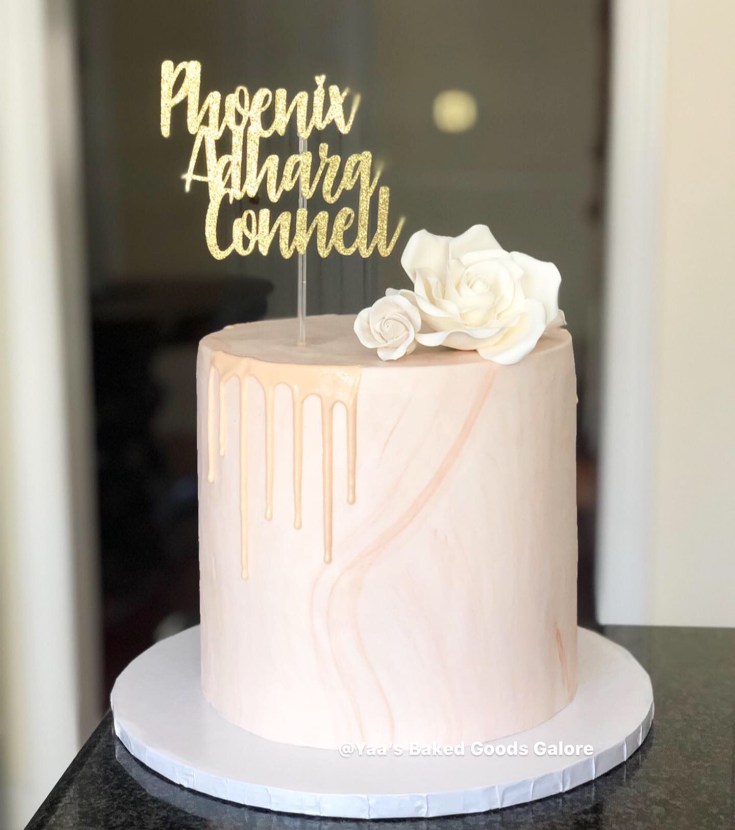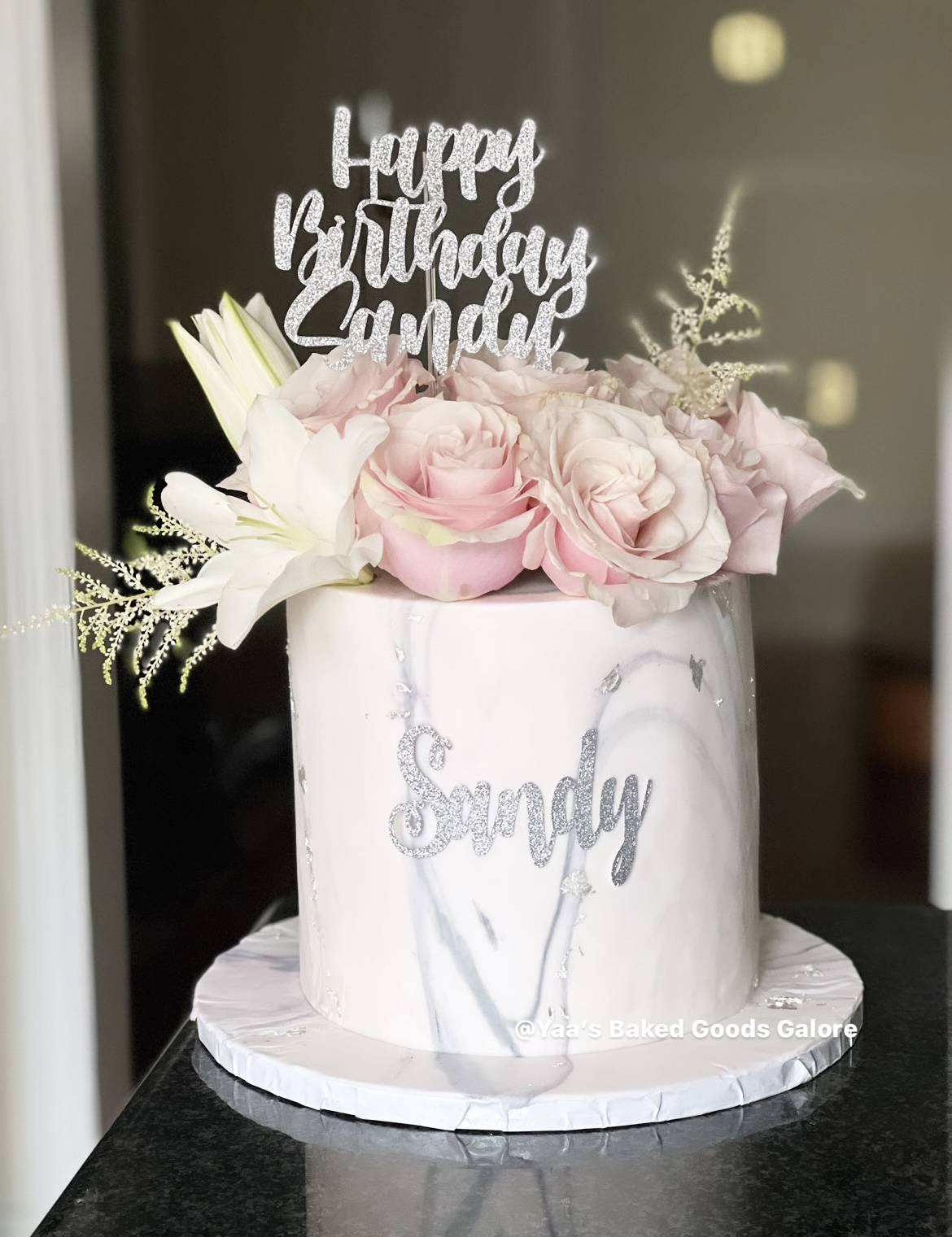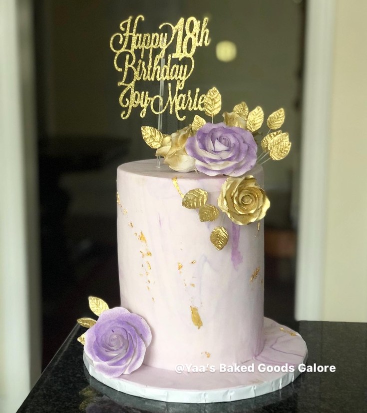 6” Vanilla marble fondant birthday cake with hints of edible gold leaf and gumpaste flowers