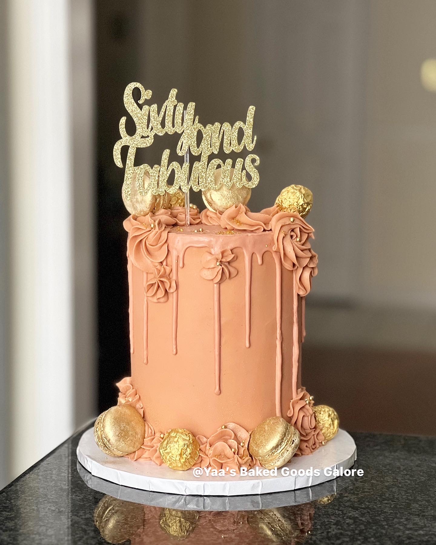 6” Vanilla and Red velvet drip cake with macarons and ferrero rocher balls