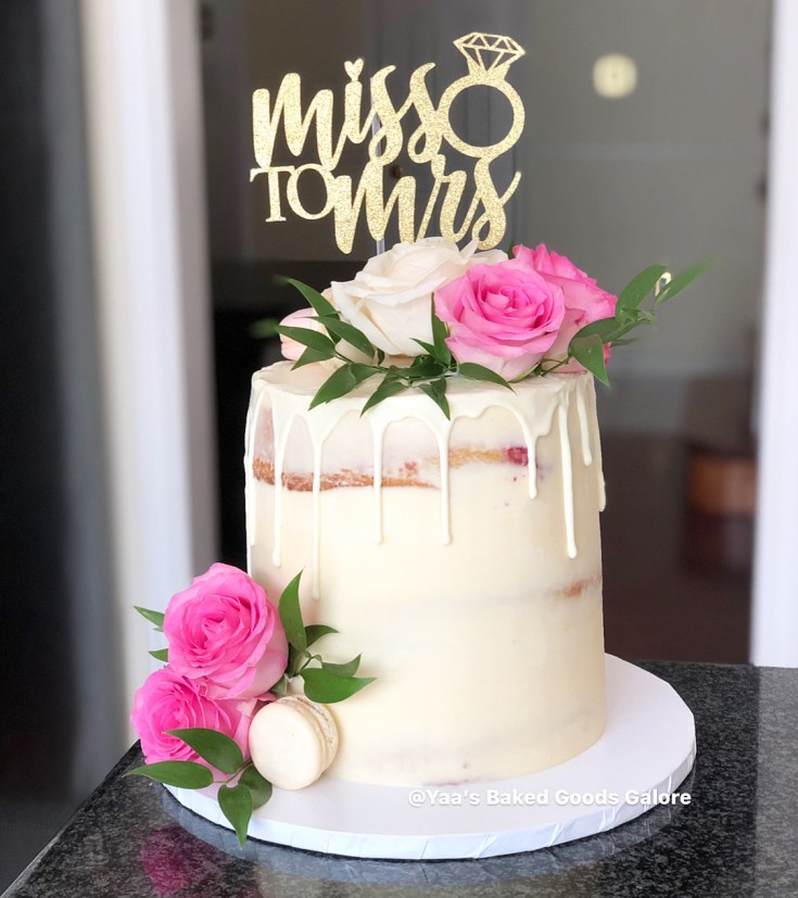 8” Vanilla and red velvet semi naked drip cake with fresh flowers and greenery