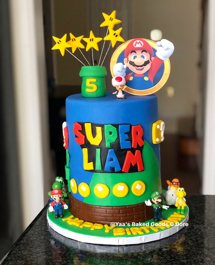 6” Vanilla and red velvet Super Mario themed birthday cake
