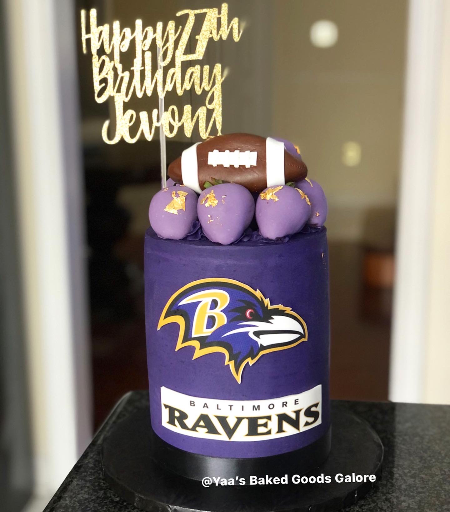 6” Red Velvet Ravens themed birthday cake with chocolate covered strawberries