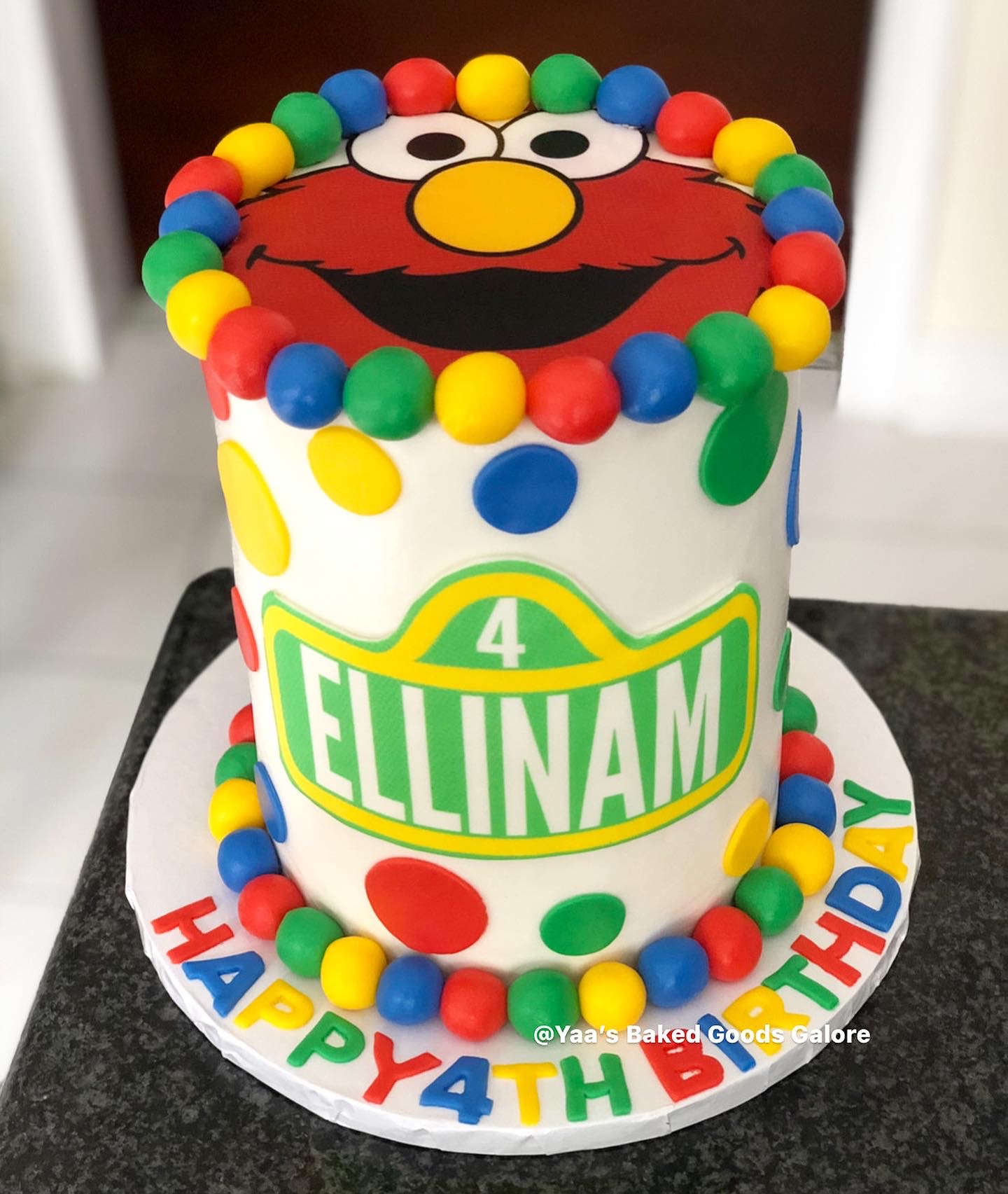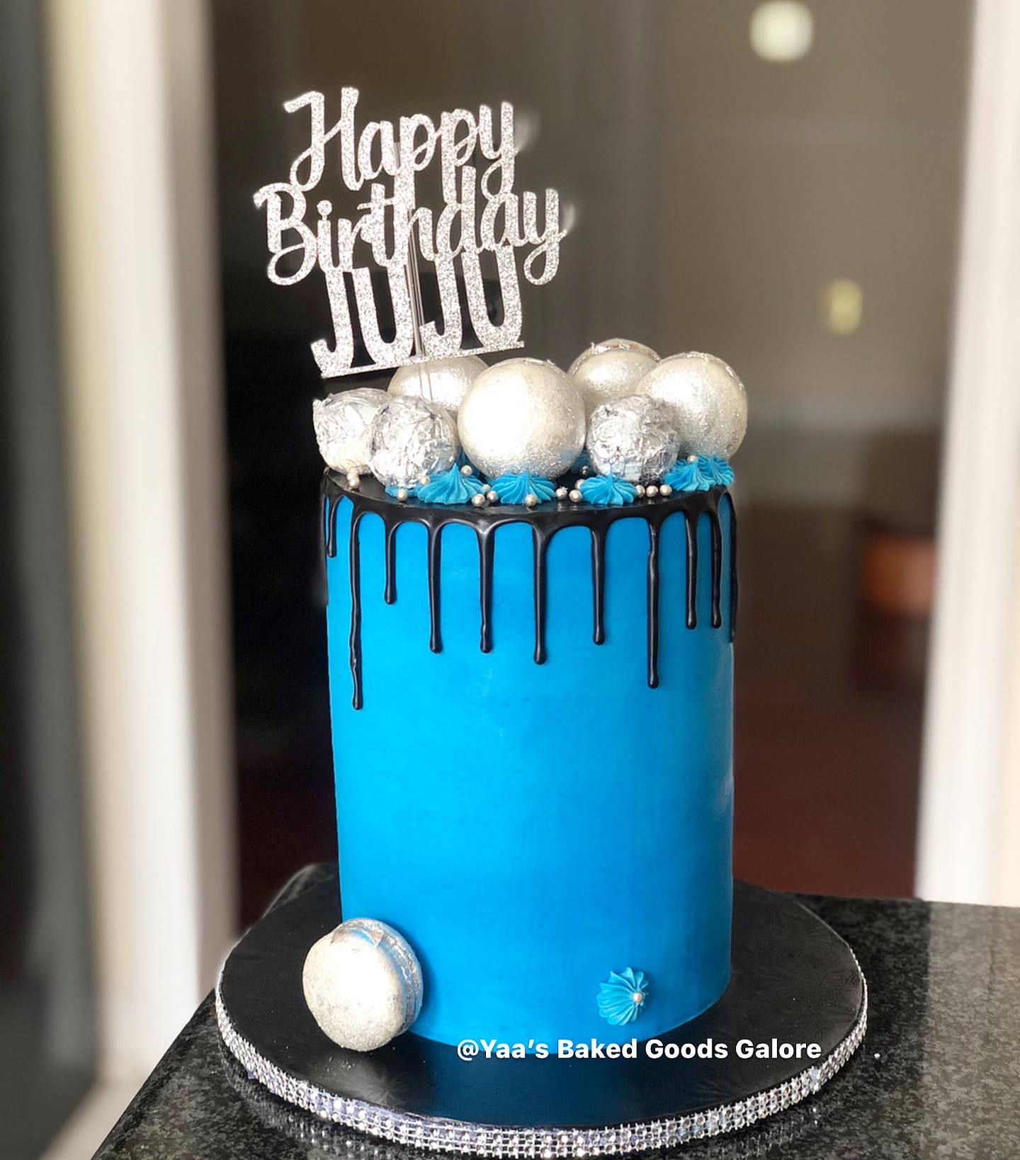 6” Vanilla and red velvet drip cake with macarons, pearls and raffaello balls