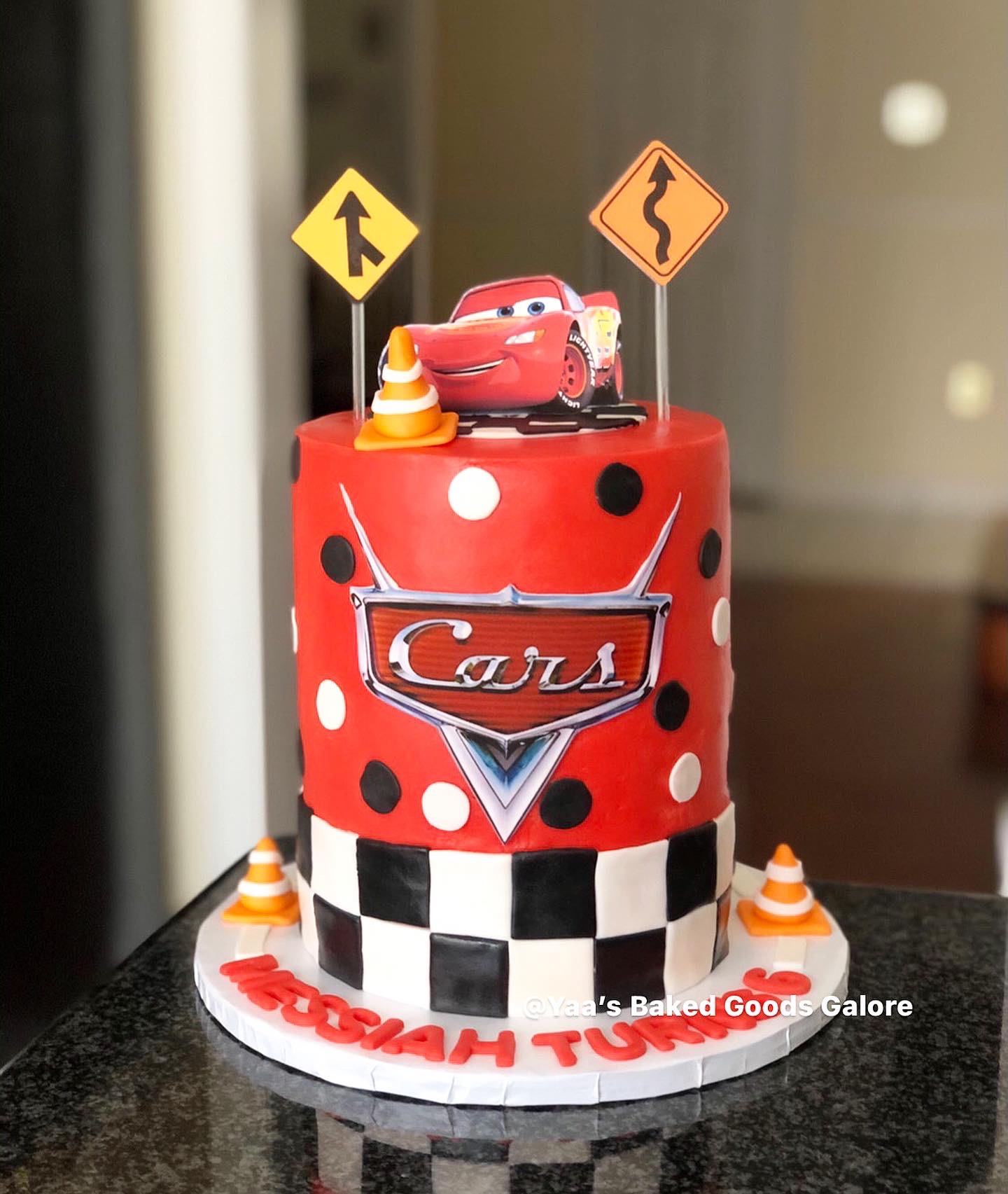 6” Vanilla and red velvet Cars themed birthday cake