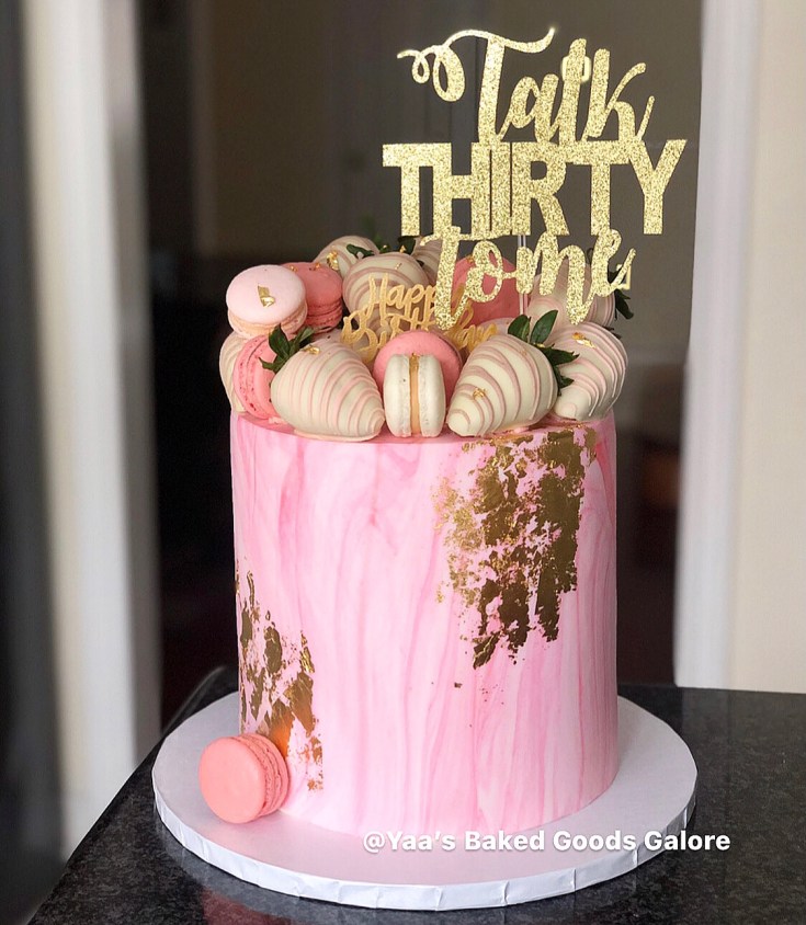 8” Vanilla marble fondant cake with chocolate covered strawberries and macarons