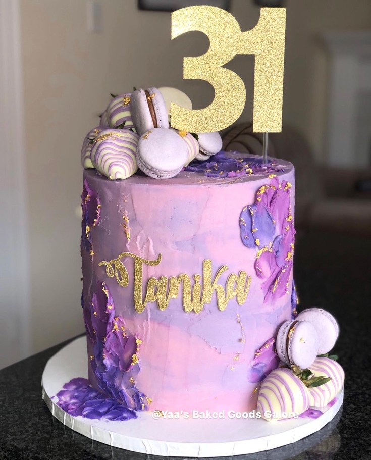 6” Vanilla tiara drip cake, Lakers/Kobe themed!