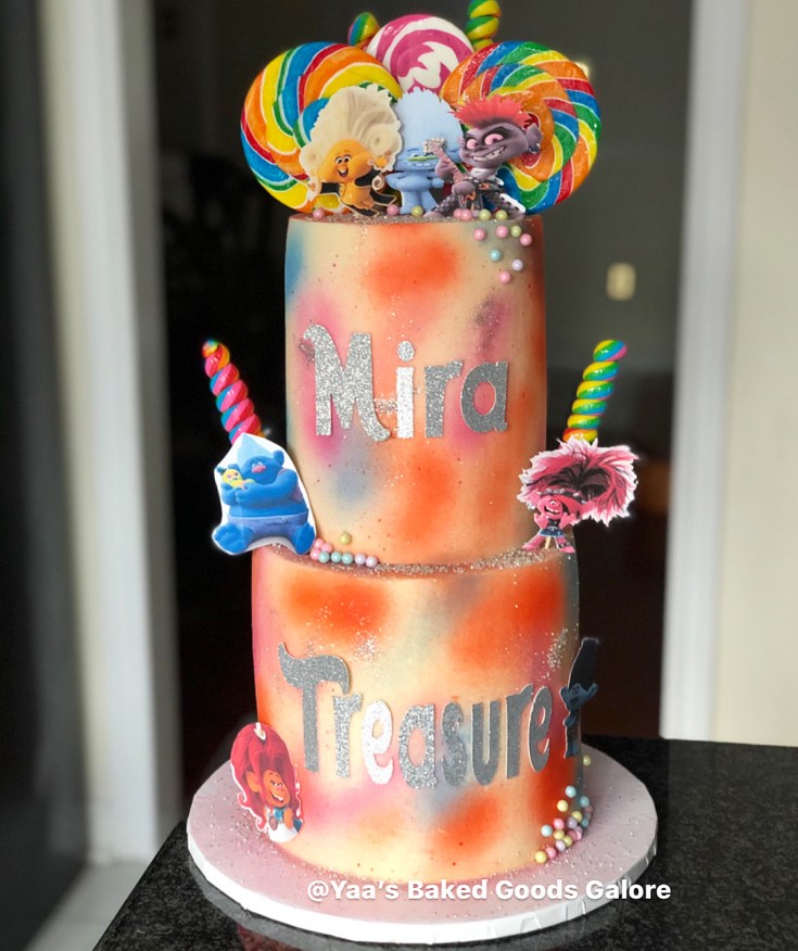 6″ + 8″ 2 tier TROLLS World Tour themed birthday cake