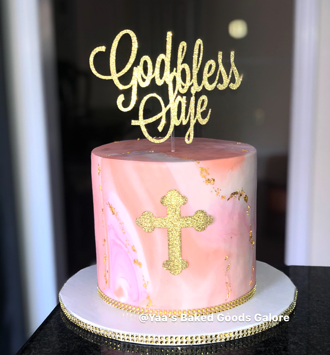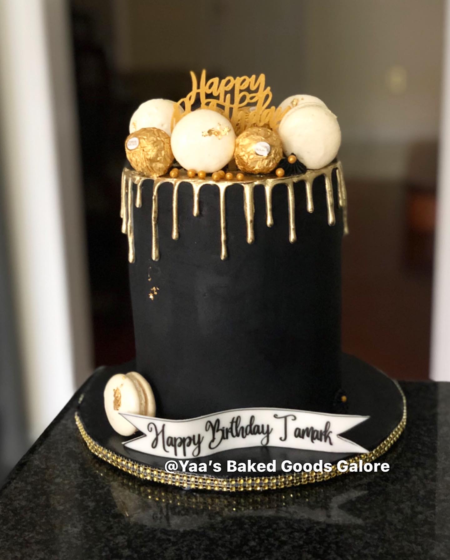 6″ Vanilla drip cake with macarons, ferrero rocher balls and a surprise! The money cake feature