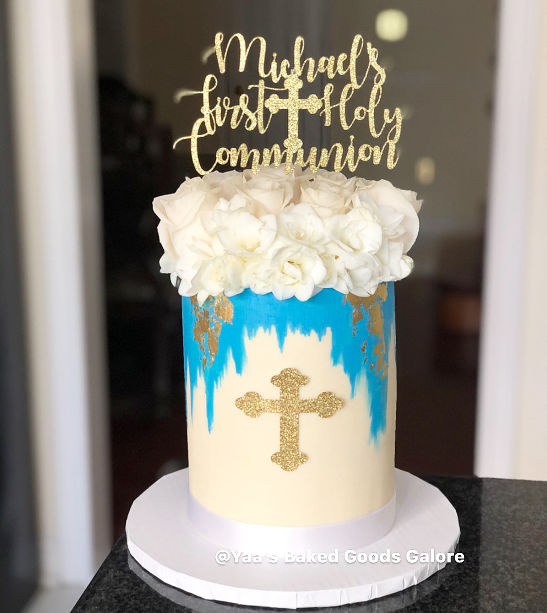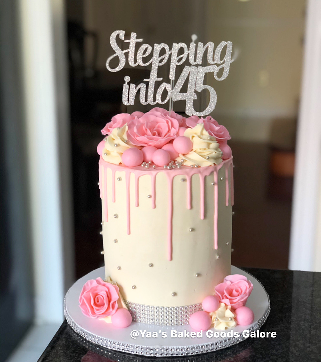 8″ Vanilla and Red velvet drip cake with handmade fondant flowers, balls, pearls and icing swirls