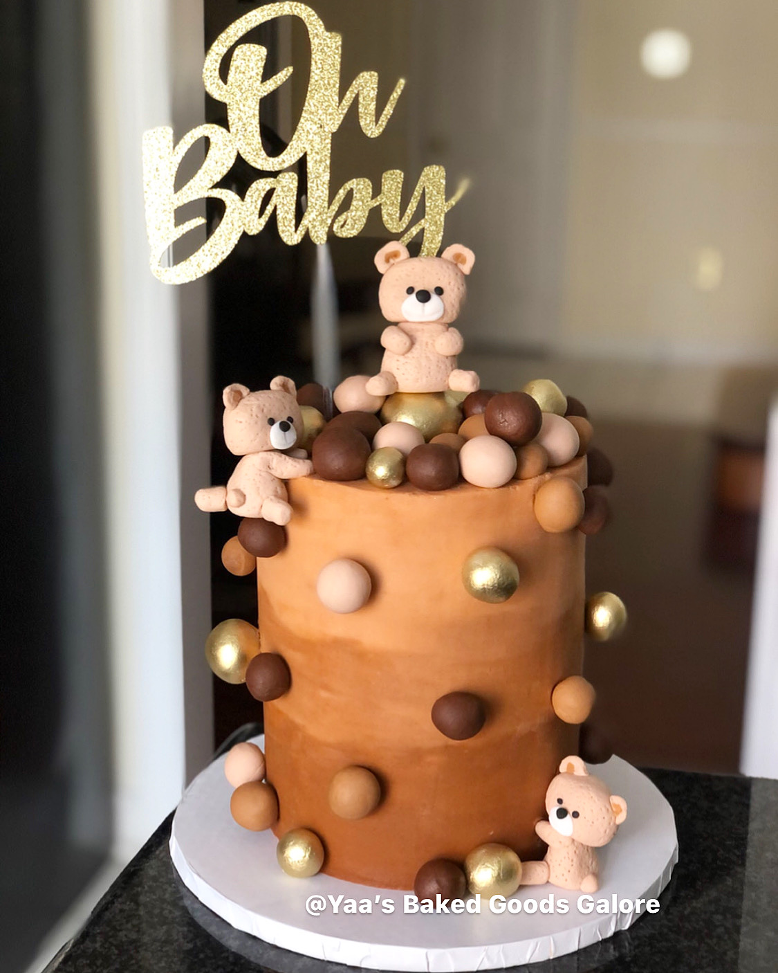 6″ Vanilla baby shower cake with handmade fondant teddy bears and balls