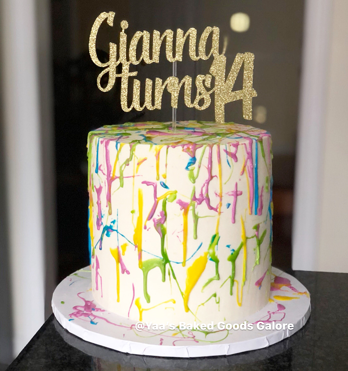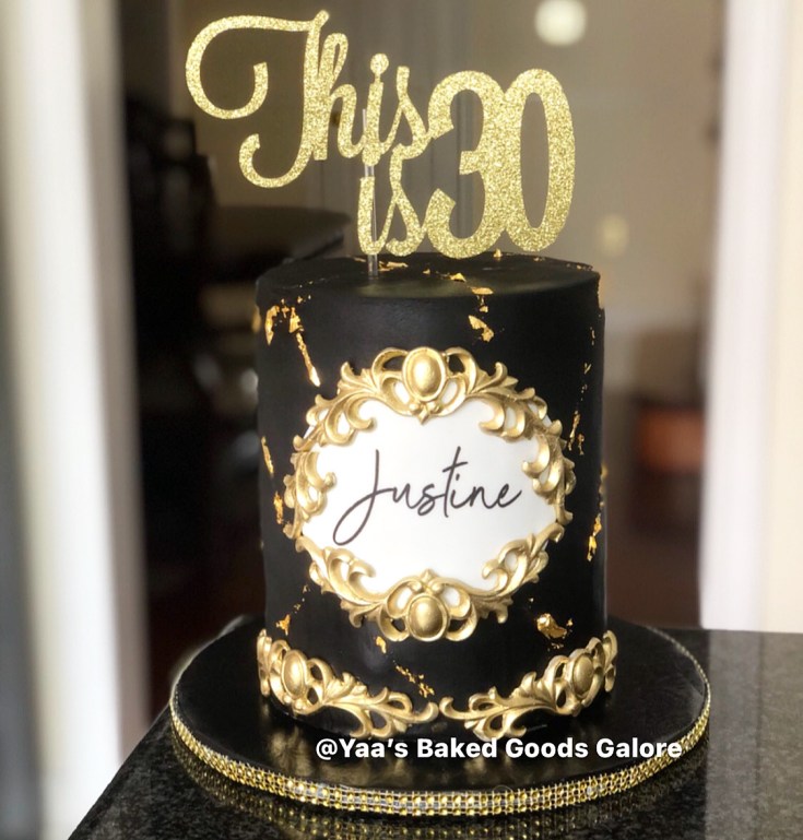 6″ Vanilla and Red velvet fondant birthday cake with a signature, hand painted gold borders and hints of edible 24k gold leaf all over