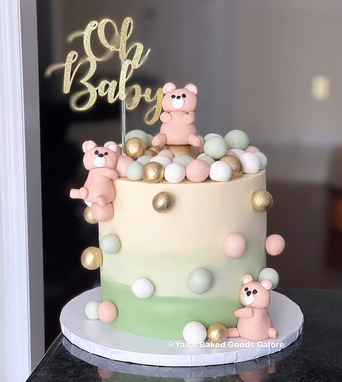 8” Red velvet baby shower cake with handmade teddy bears and balls