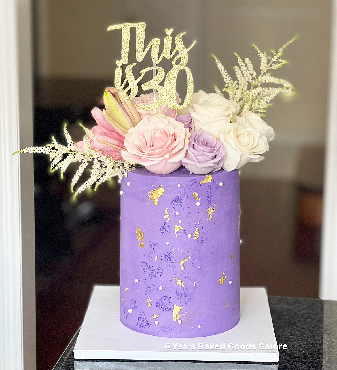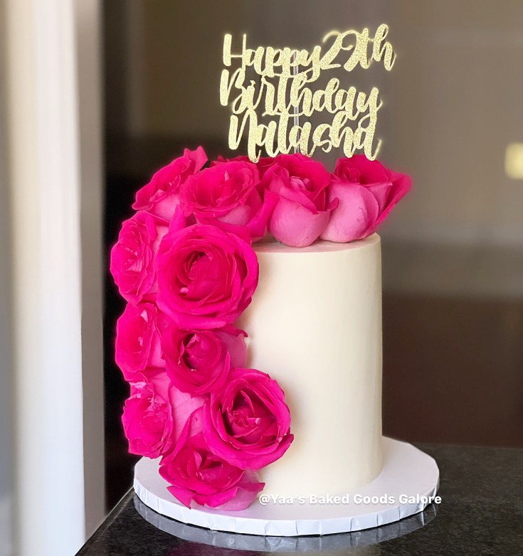 6” Red velvet birthday cake with fresh roses
