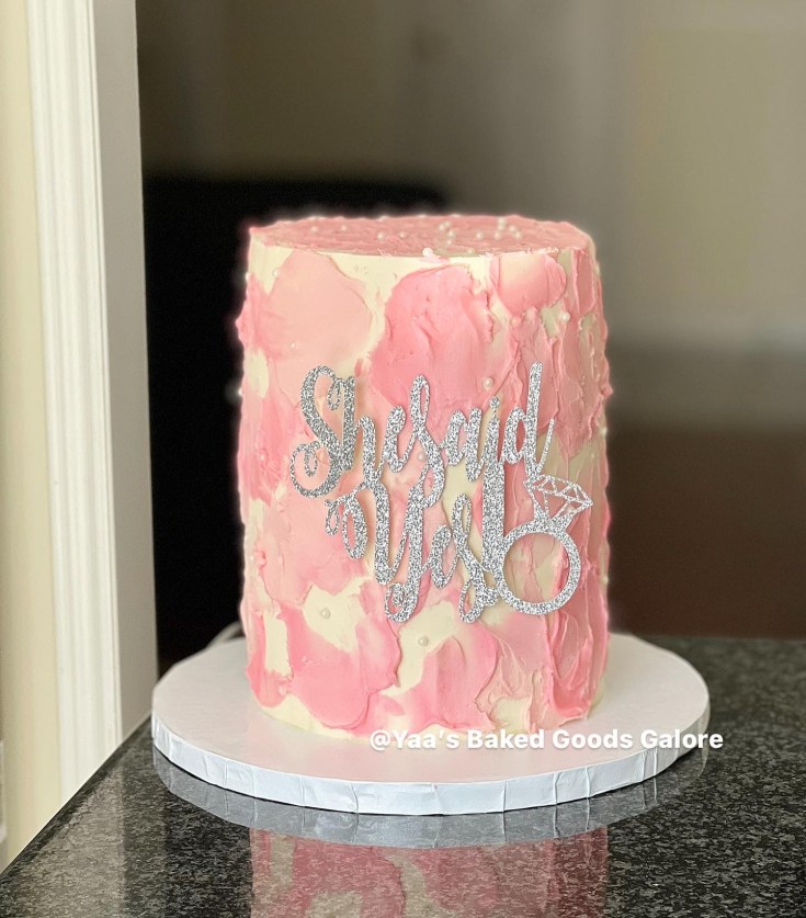 6” Vanilla and Red velvet birthday cake with a bouquet of flowers