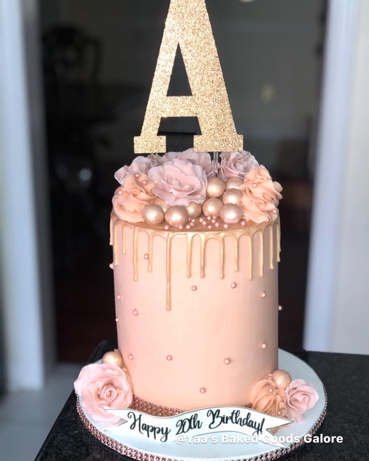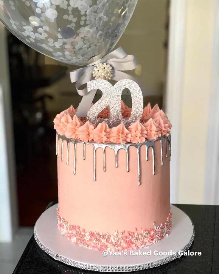 6″ Vanilla drip cake with handmade fondant flowers, balls and swirls