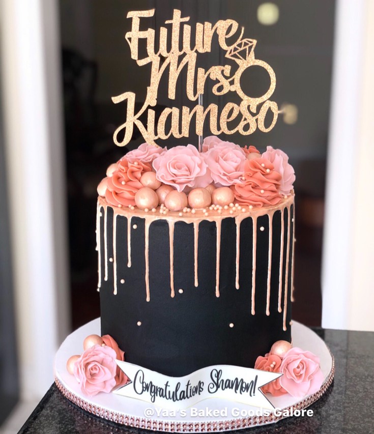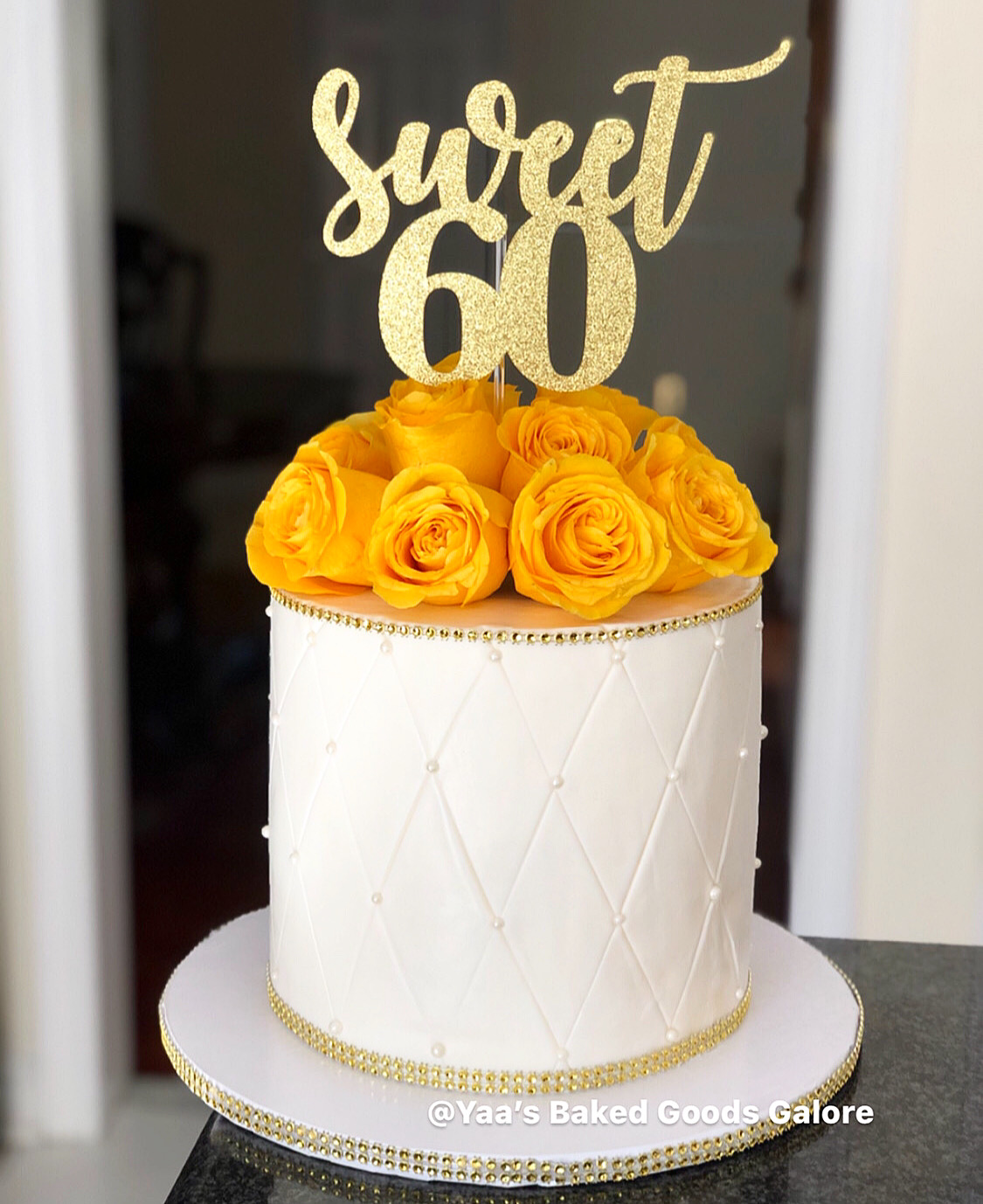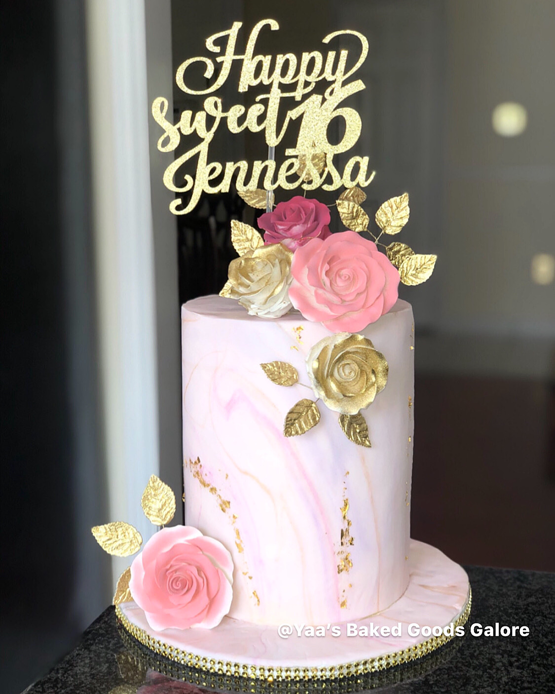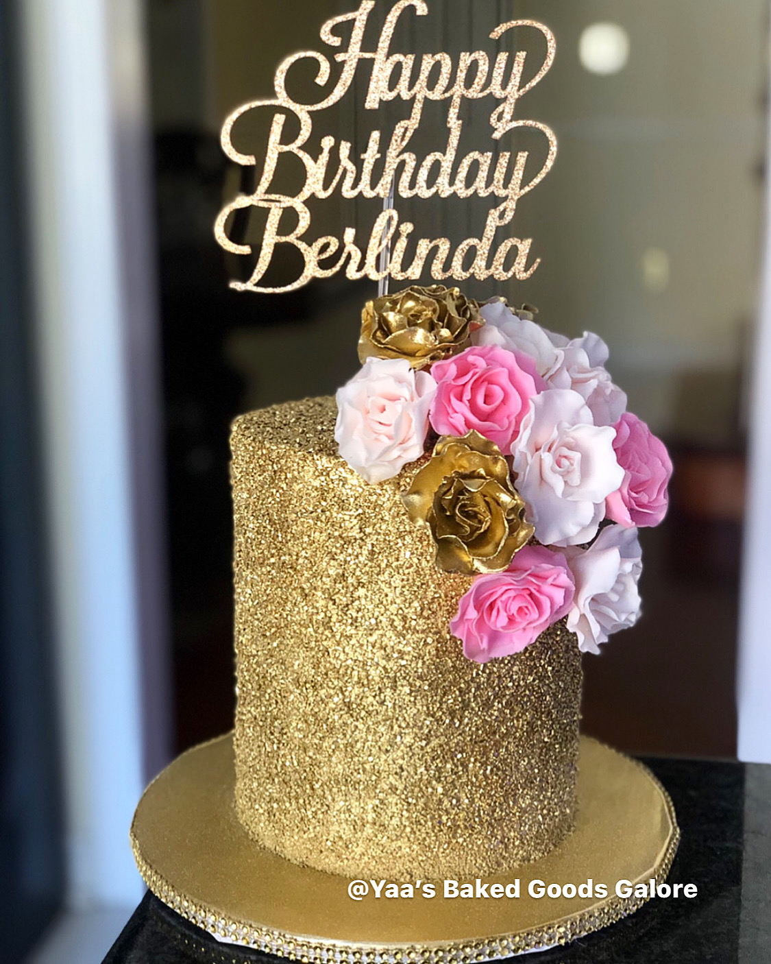 6″ Vanilla and Red Velvet gold shimmer cake with handmade fondant flowers