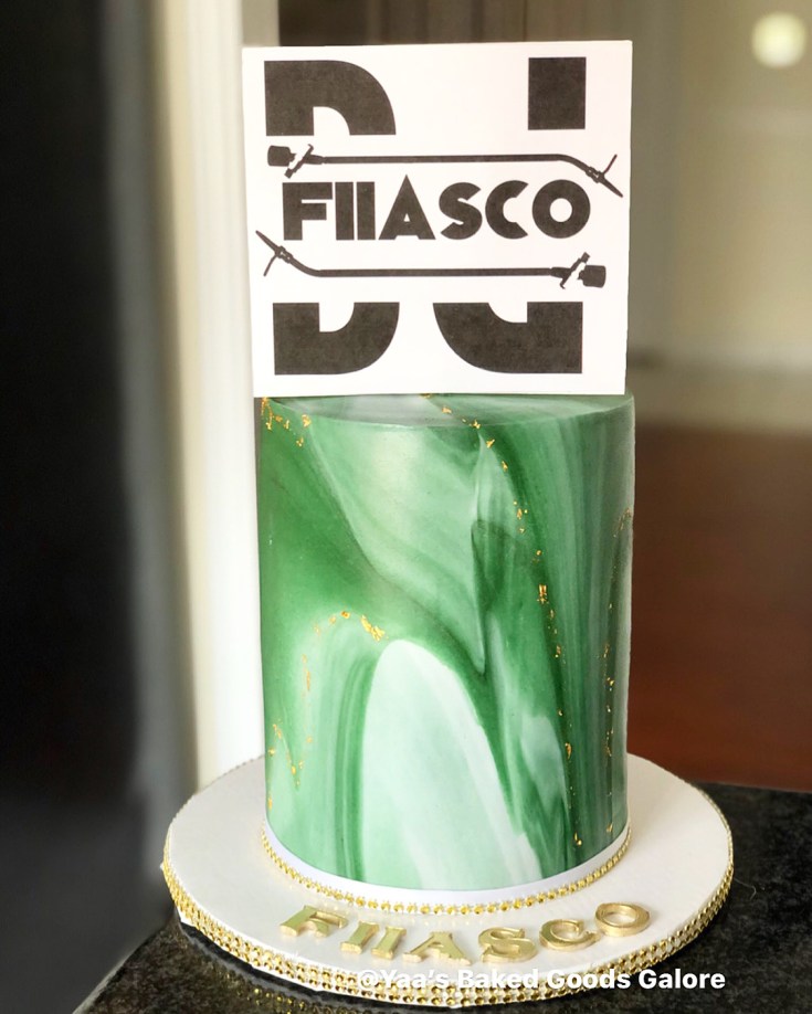 6″ Vanilla and Chocolate Tall marble fondant cake with hints of edible 24k gold