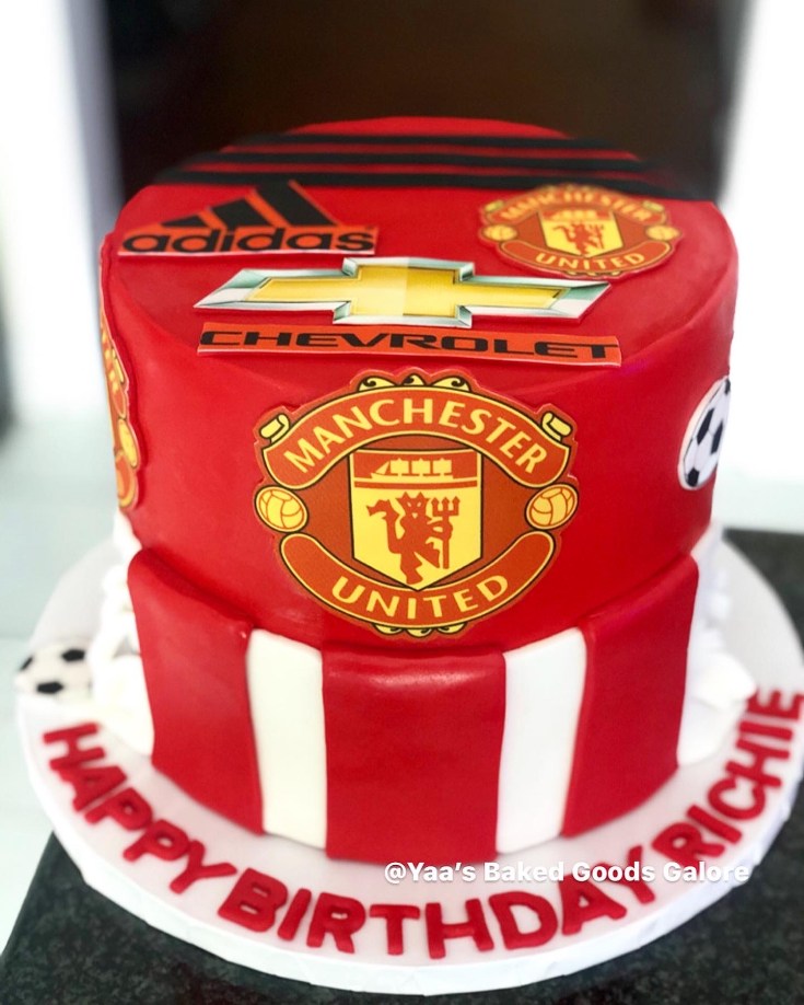 8″ Vanilla and Red Velvet Manchester United birthday cake