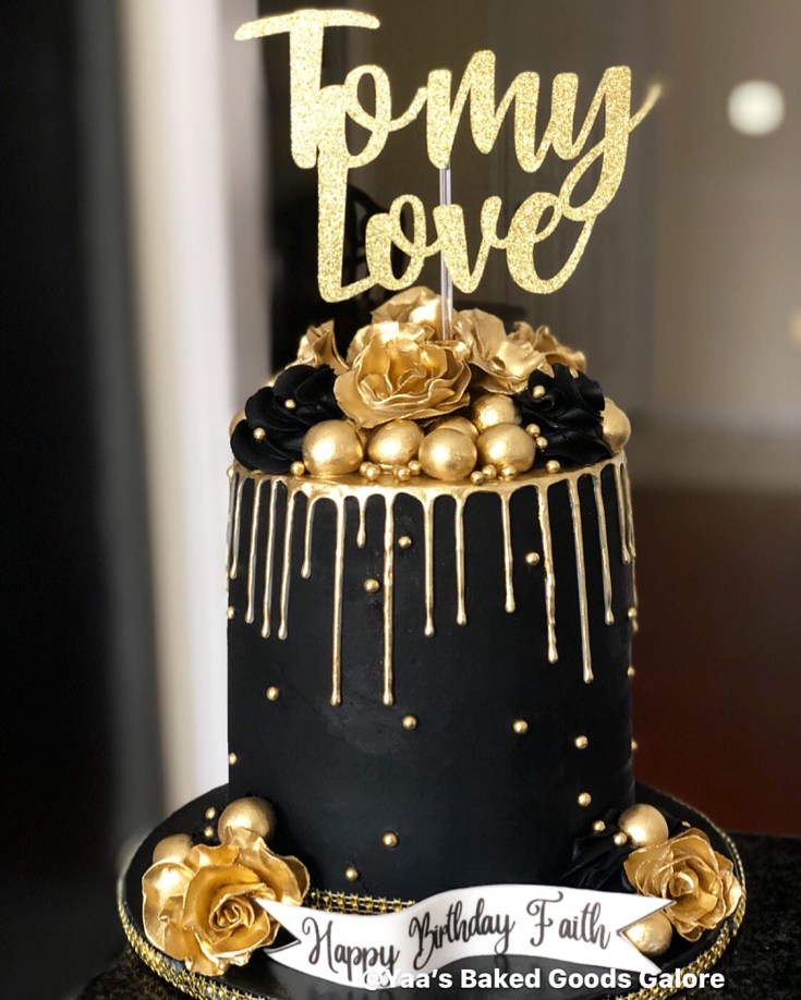 6″ Red Velvet drip cake with handmade fondant flowers, balls and icing swirls