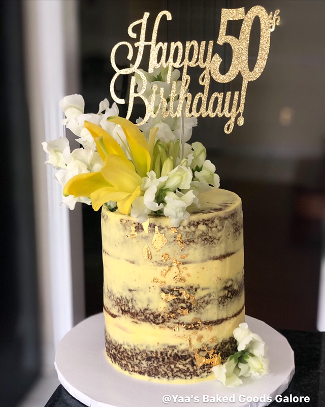 6″ Carrot semi-naked birthday cake with fresh florals and edible 24k gold