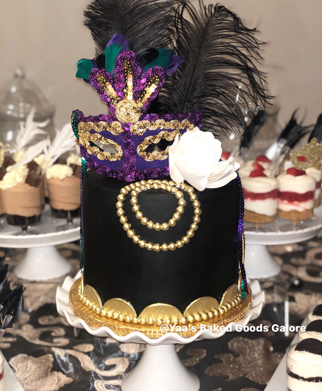 8″ Vanilla and Red Velvet Masquerade themed cake