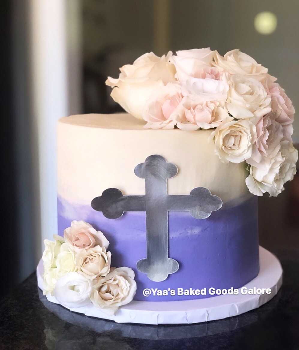 8″ Vanilla confirmation cake with real florals