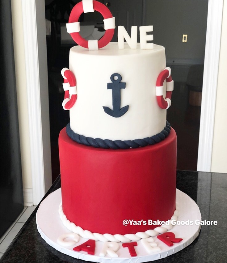 6″ + 8″ 2 tier nautical themed 1st birthday cake