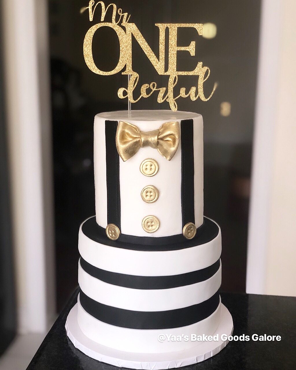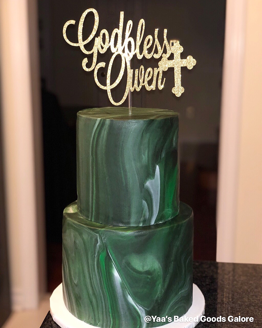 6″ + 8″ Chocolate marble fondant Baptism cake