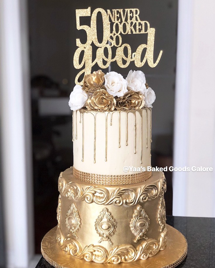 8″ Vanilla birthday cake with fresh carnations and edible 24k gold