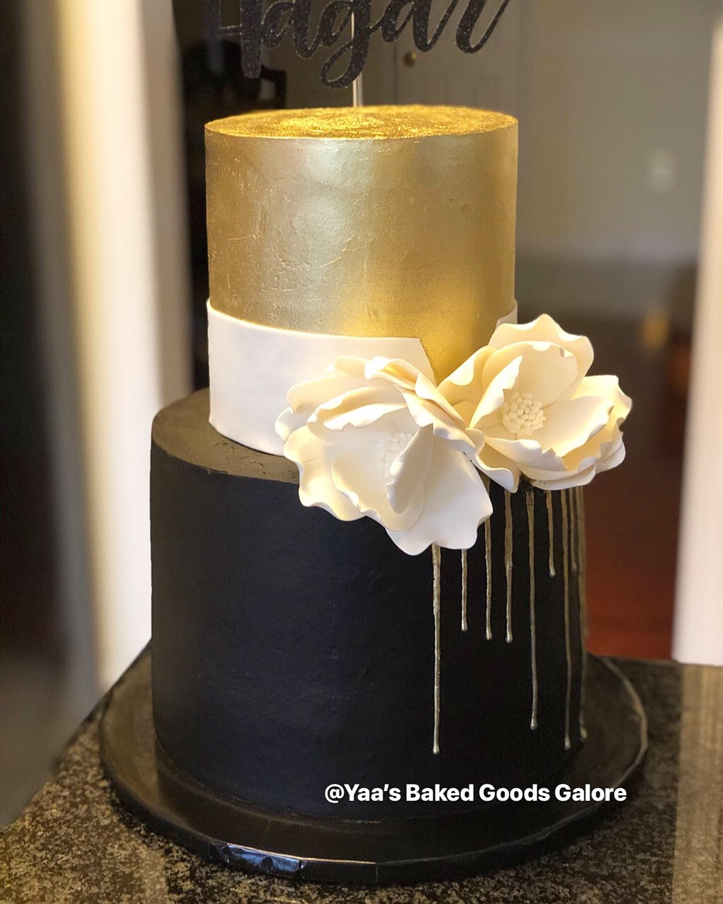 6″ + 9″ Red velvet and Vanilla cake with drip and gum paste flowers