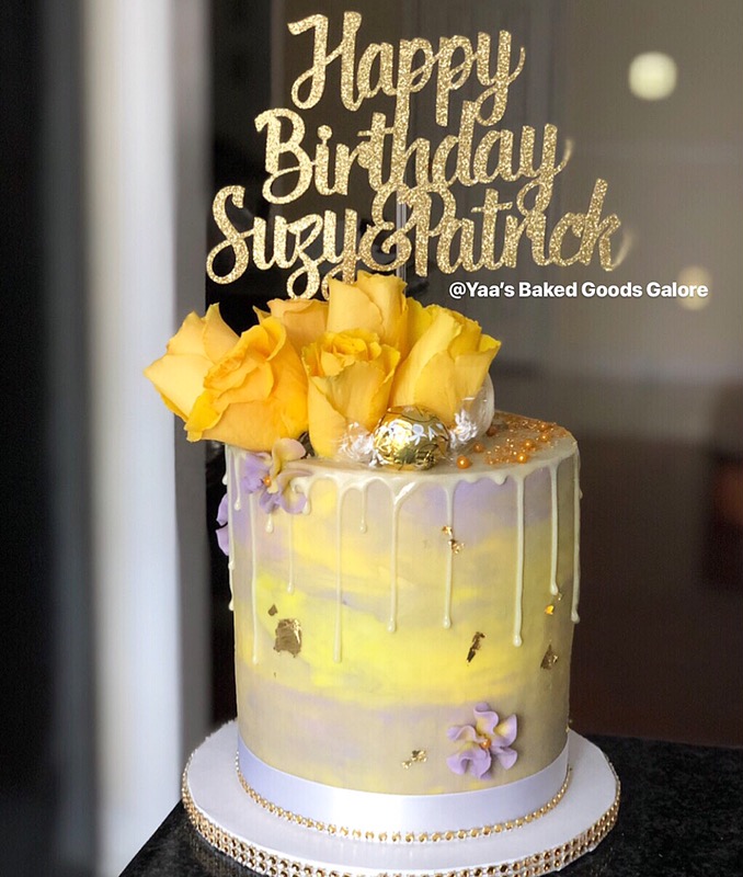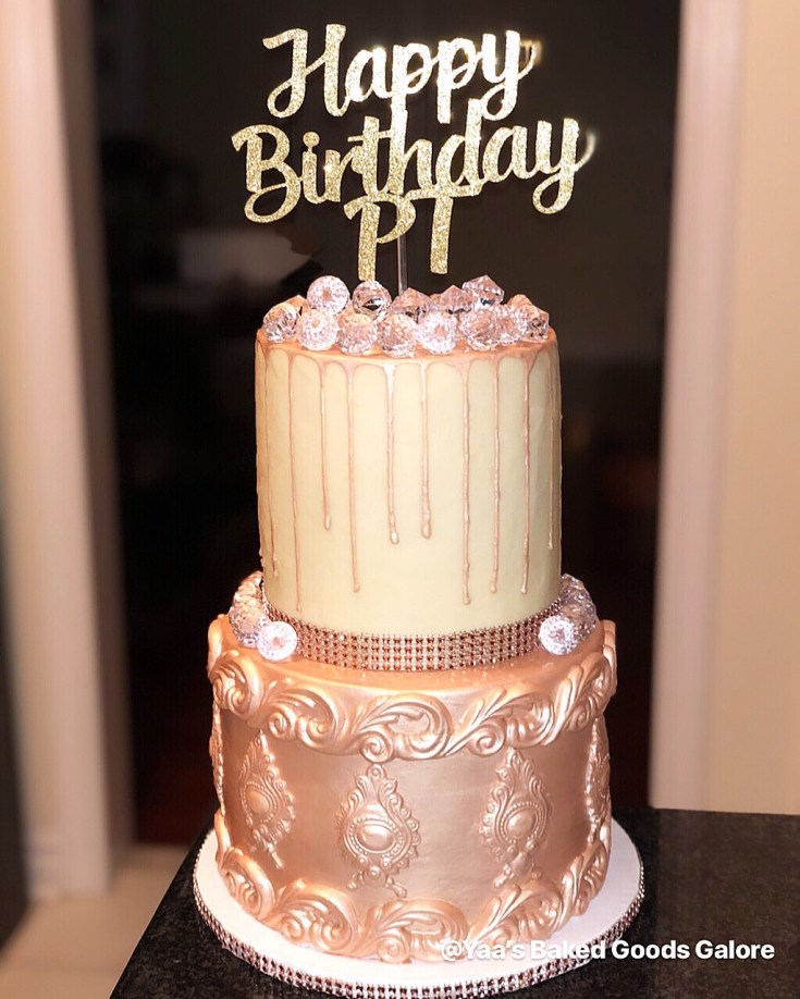 6″ + 8″ birthday cake featuring drips, royal bottom & jewels