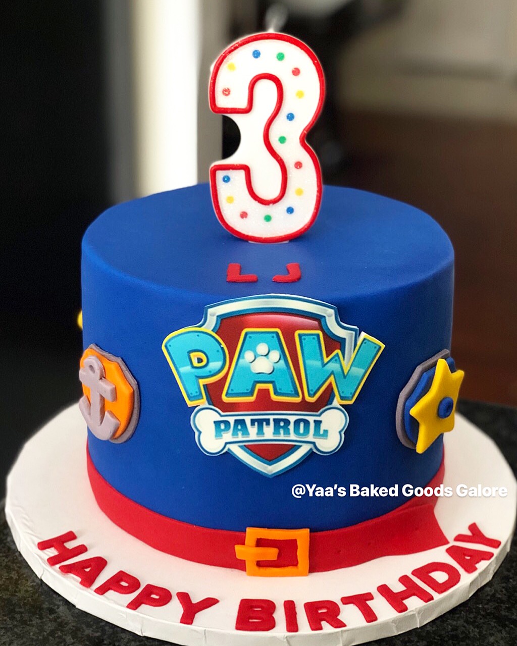 8″ Vanilla Paw Patrol theme 3rd birthday cake (all edible)