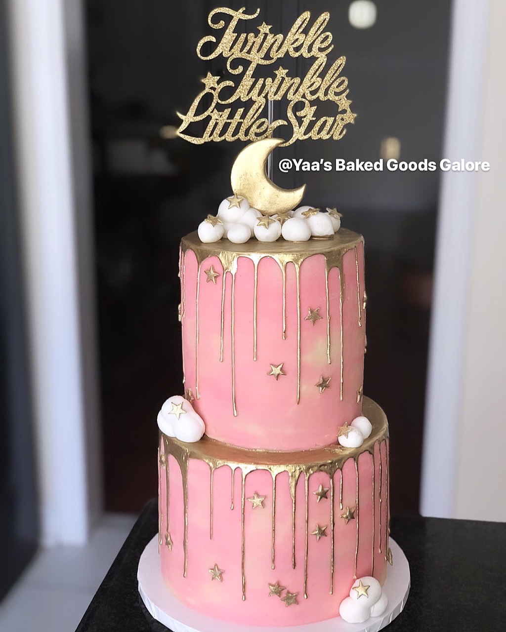 6″ + 8″ Twinkle Twinkle little star themed drip cake (all buttercream w/ fondant details)