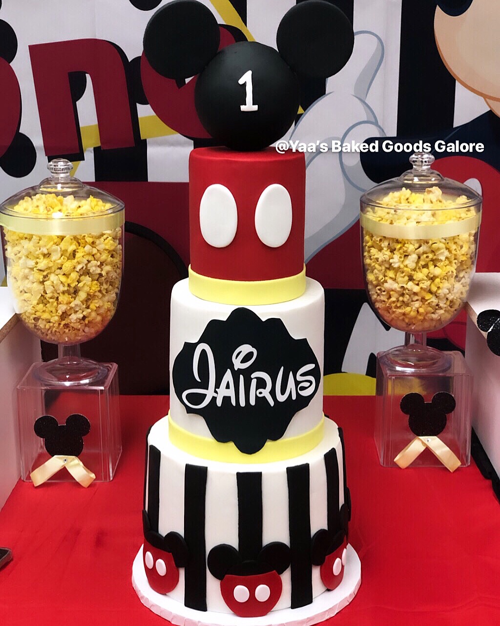 4″ + 6″ + 8″ Mickey Mouse theme 1st birthday cake