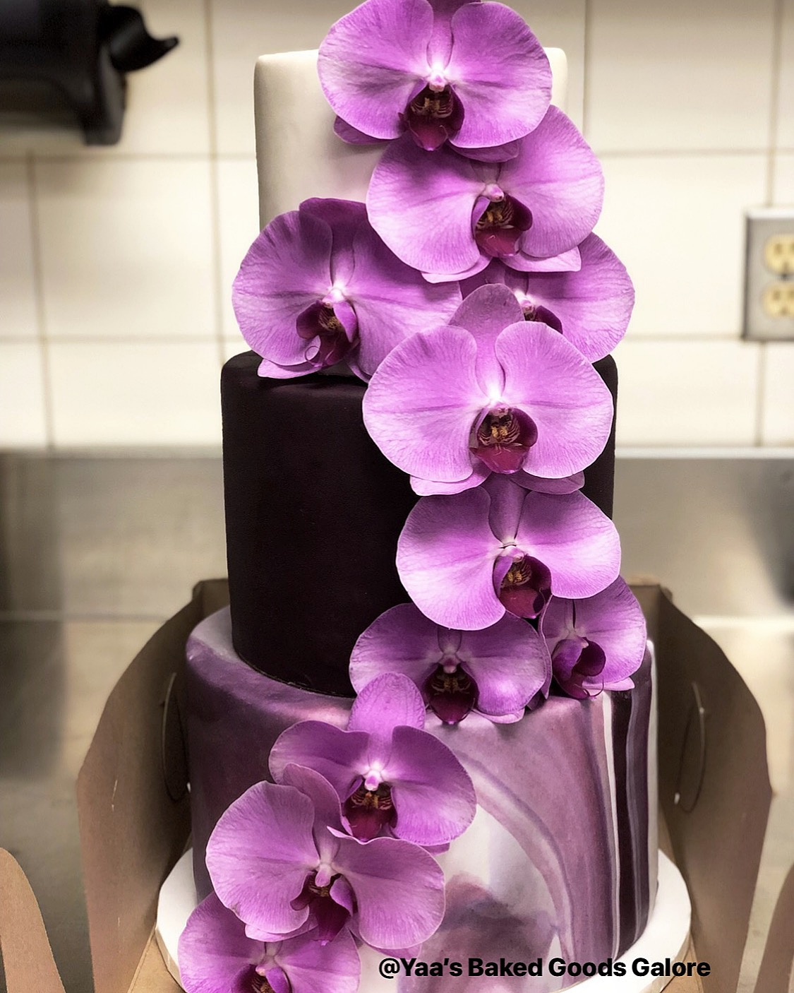 6″ + 8″ + 10″ Red velvet and chocolate custom Wedding cake w/ fresh orchids