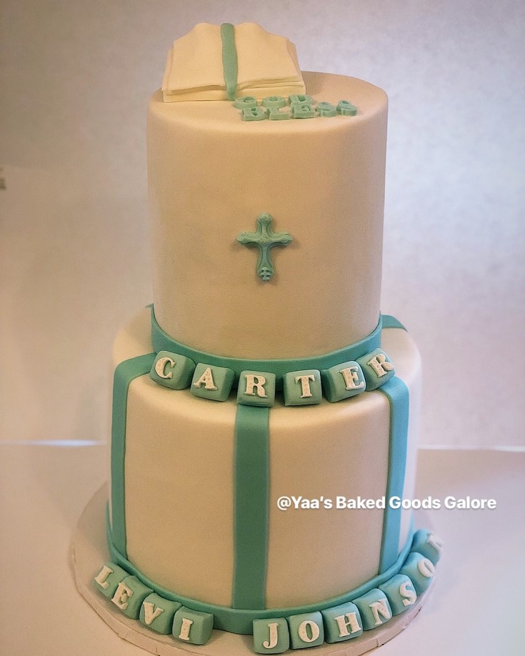 6″ + 9″ (4 layers per tier) Vanilla Christening cake
