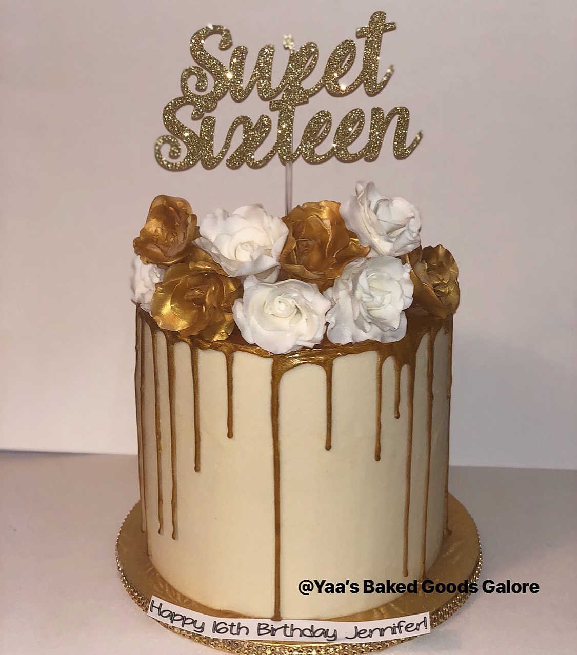 8″ 4 layer Vanilla drip cake w/ fondant flowers