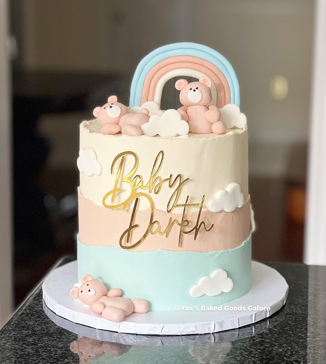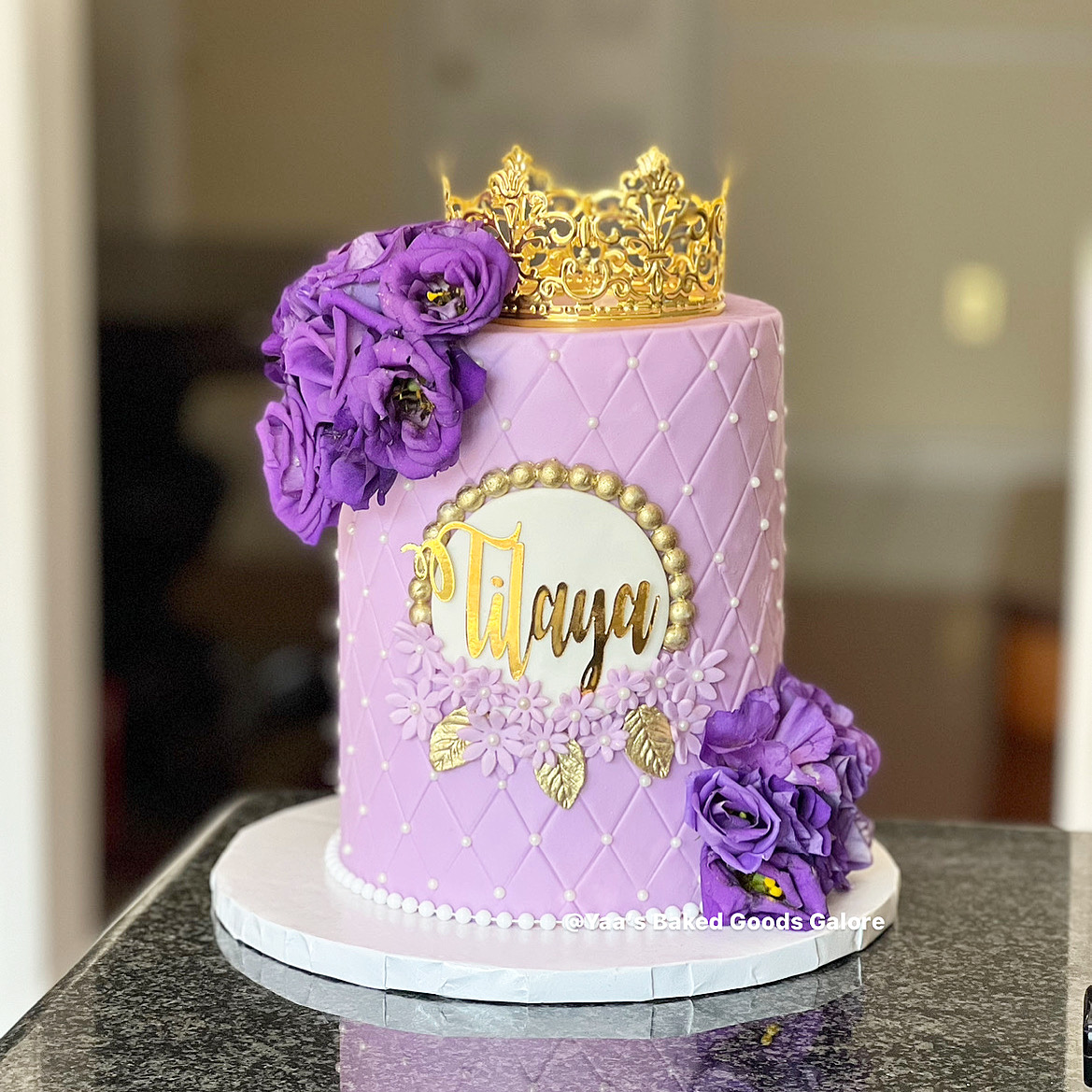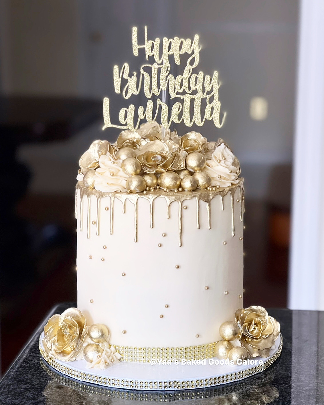 8” Vanilla birthday cake with signature, handmade fondant details and edible 24k gold leaf