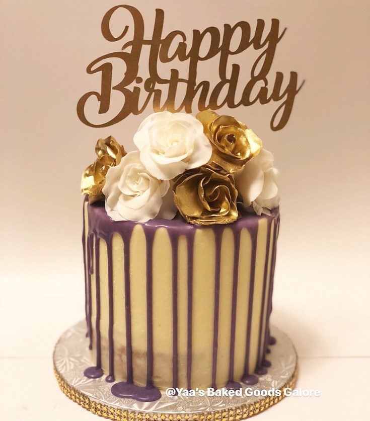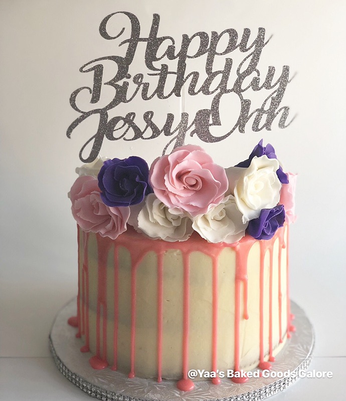 8″ drip cake w/ fondant flowers