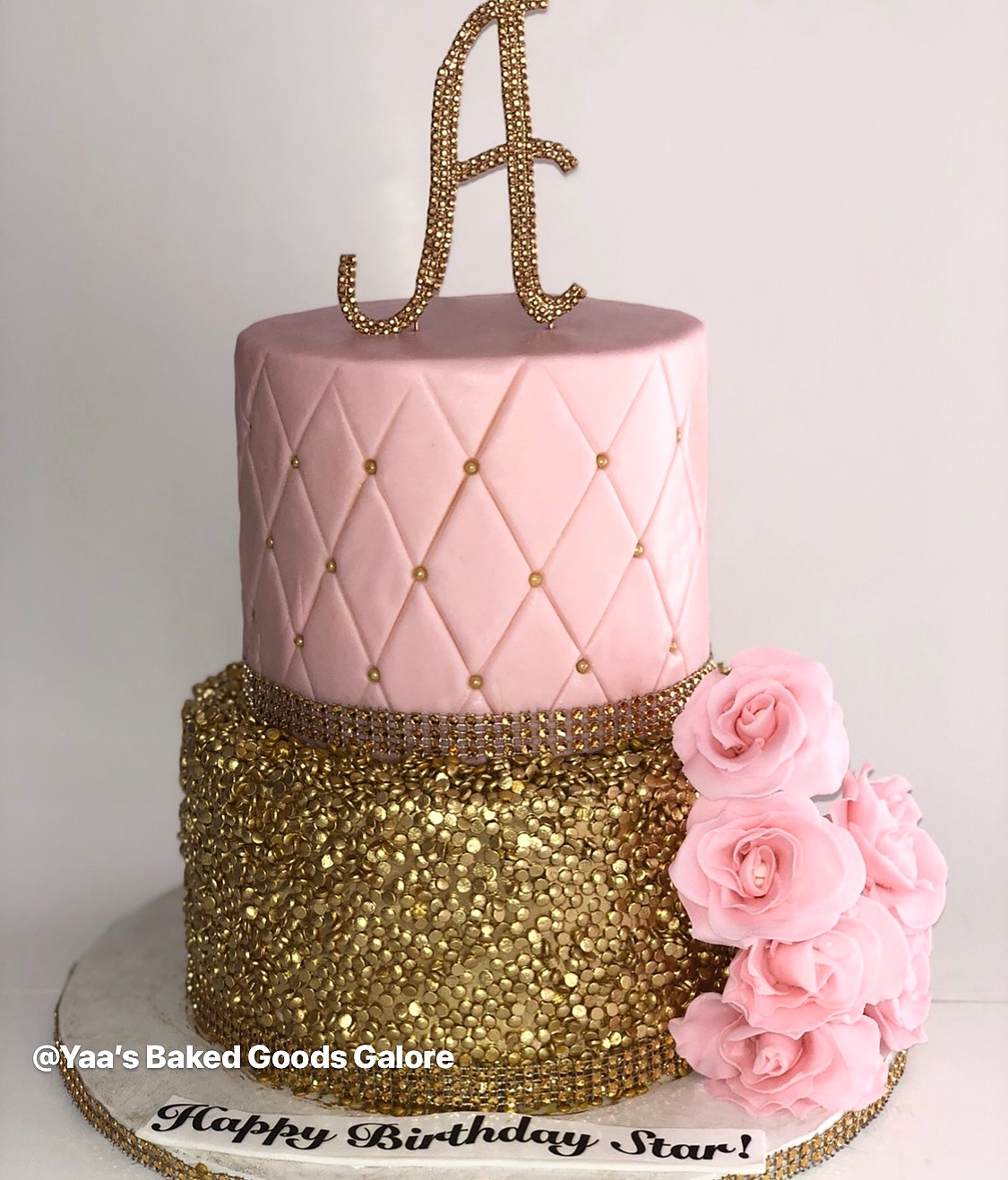 6″ + 8″ Quilt pattern + Sequin cake w/ fondant flowers