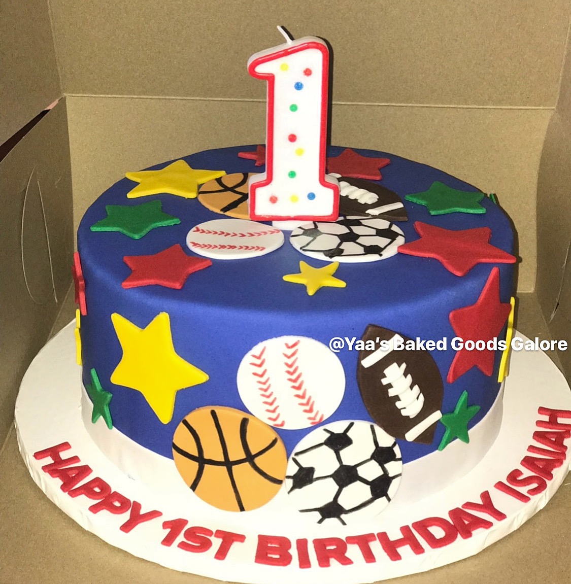 10″ Vanilla custom 1st birthday sports cake