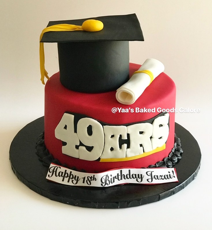 8″ Graduation + Birthday 49ers themed cake