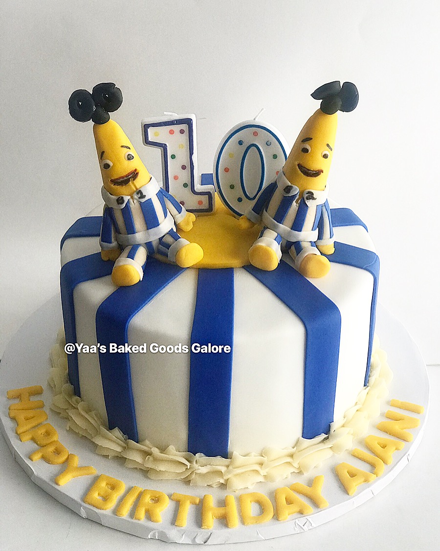 8″ Vanilla and Chocolate marble Bananas in Pyjamas themed cake