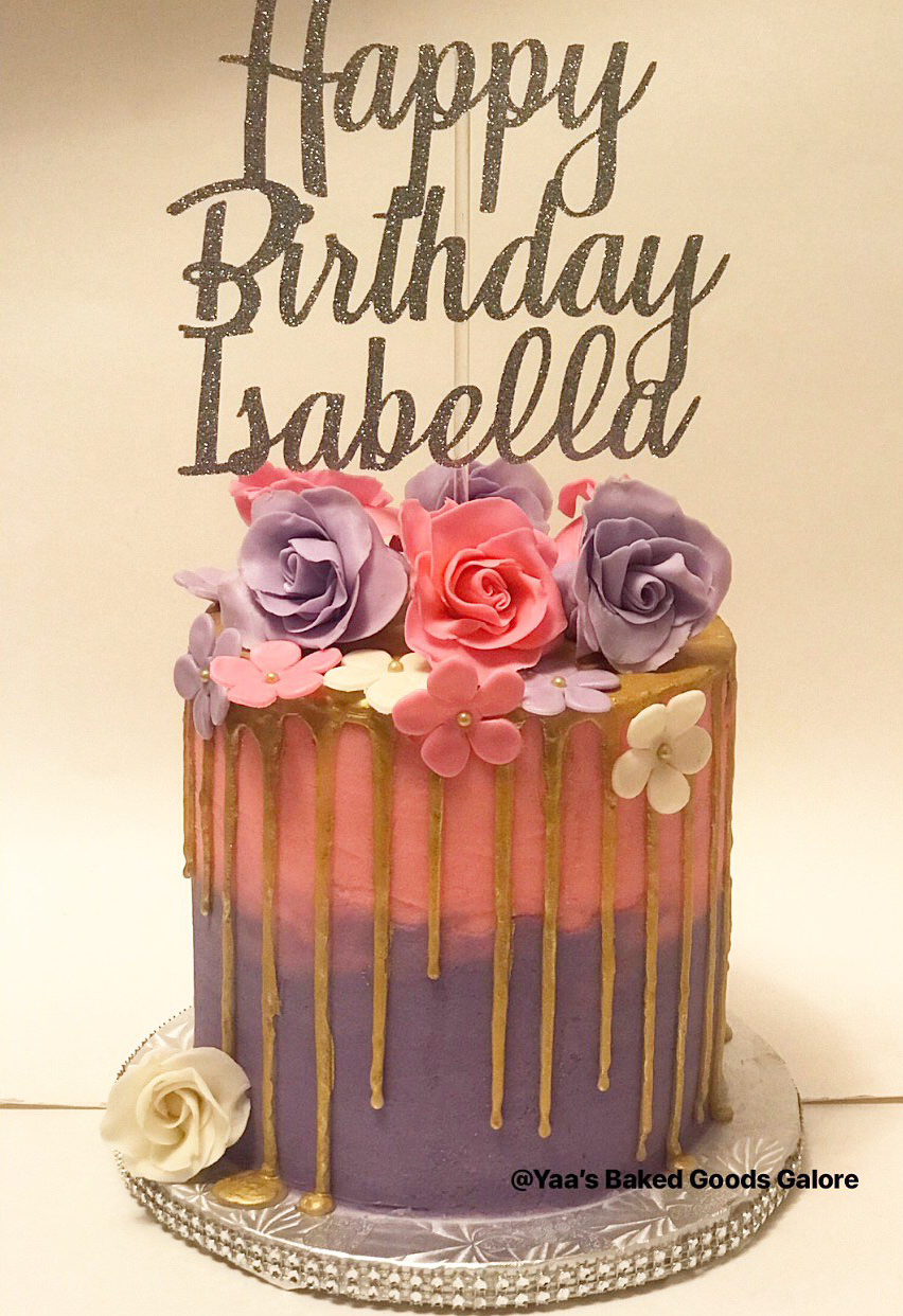 6″, 4 layer Vanilla Overload drip cake