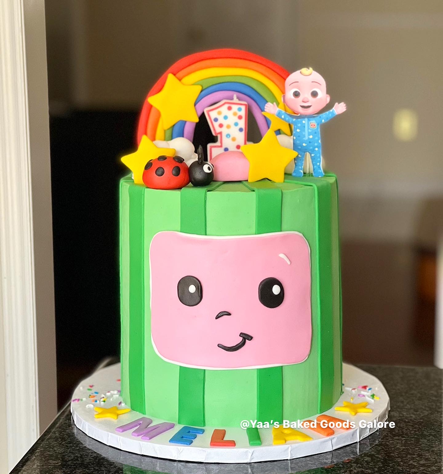 8” Vanilla Cocomelon 1st birthday cake