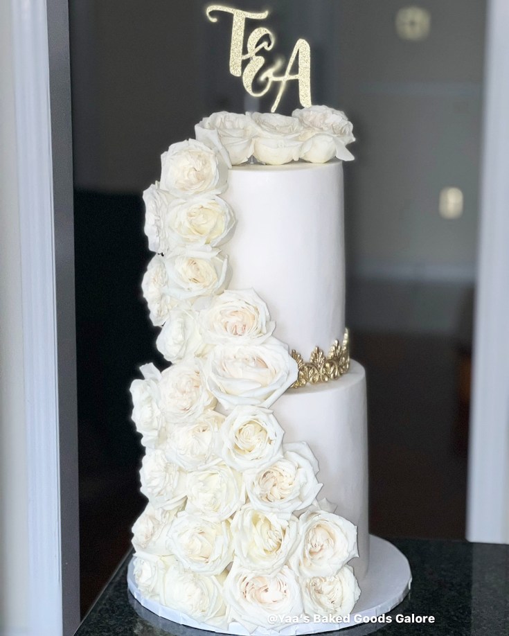 6” + 8” 2 tier Vanilla and Red velvet cake with cascading fresh roses