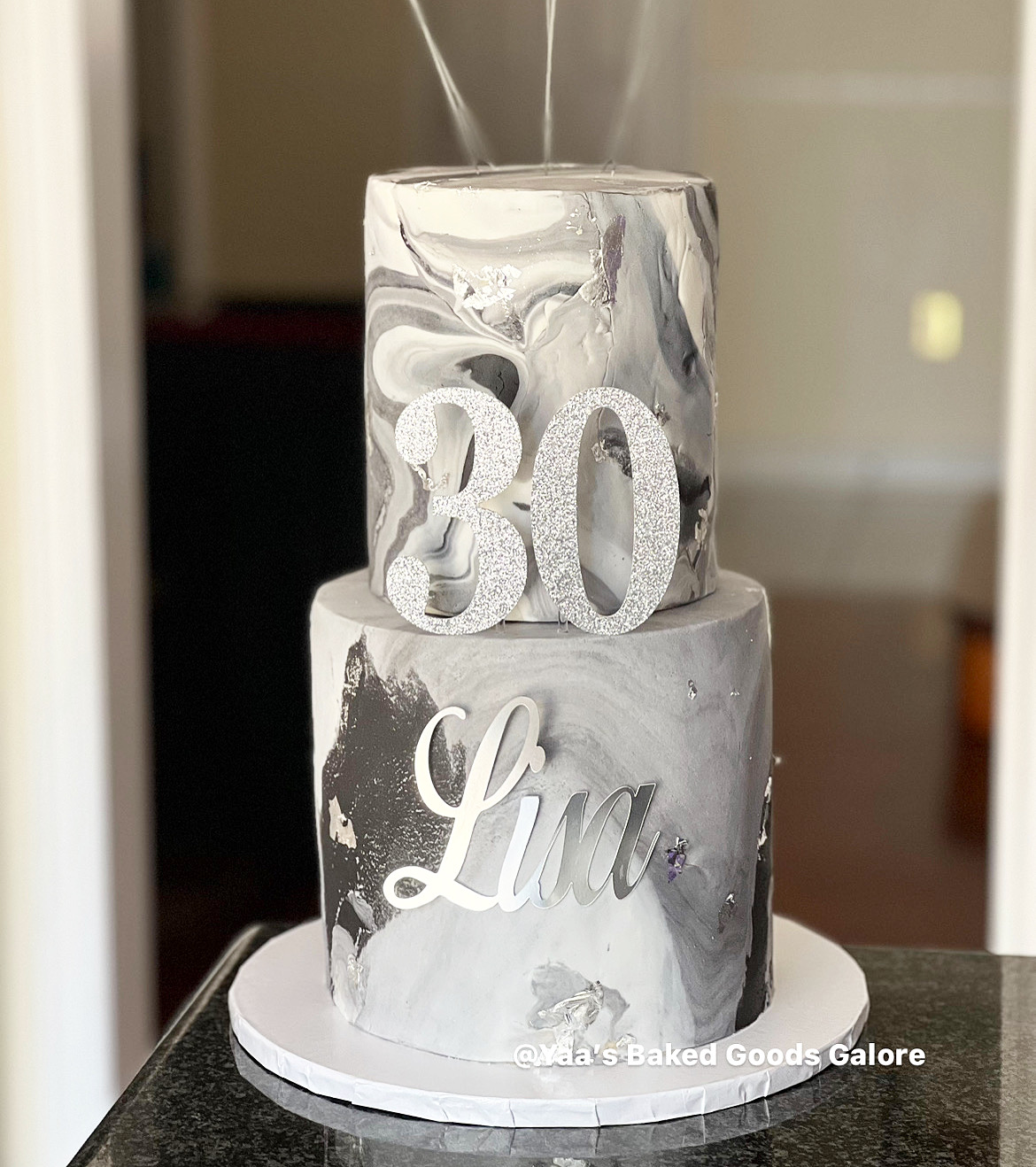 6” + 8” 2 tier Vanilla marble fondant 30th birthday cake