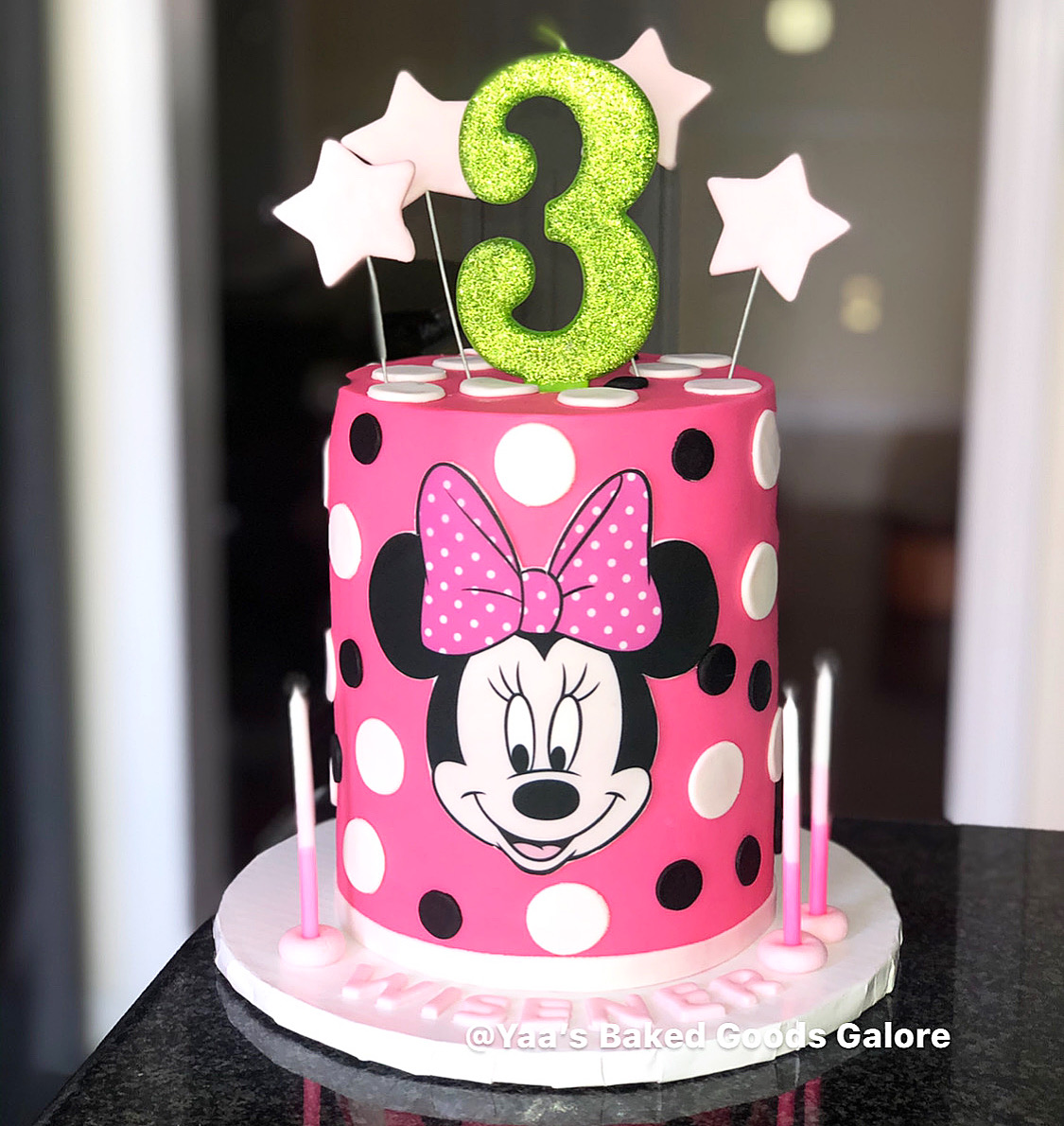 6″ Vanilla and Chocolate Minnie mouse themed 3rd birthday cake