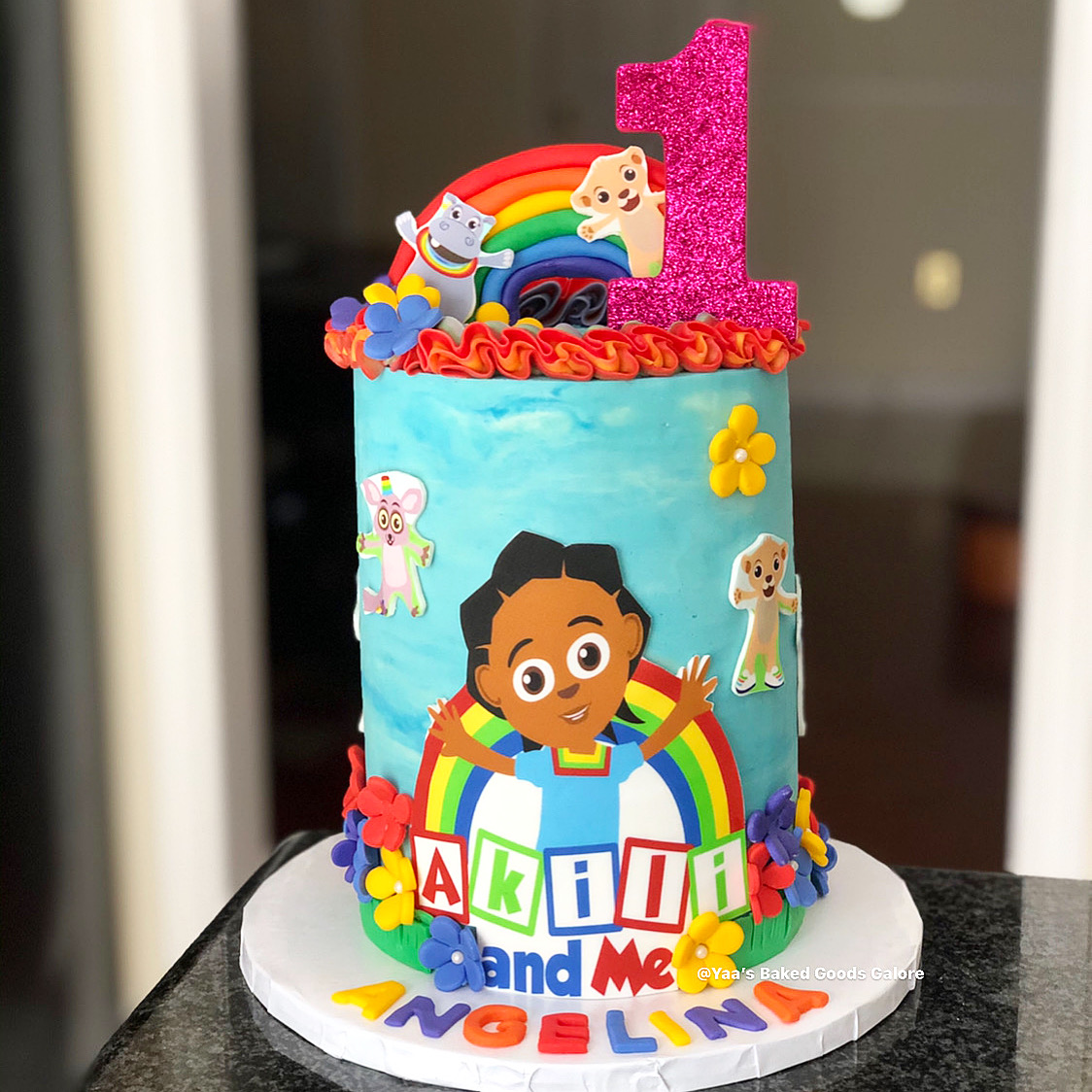 6” Vanilla and Red velvet ‘Akili and me’ themed first birthday cake