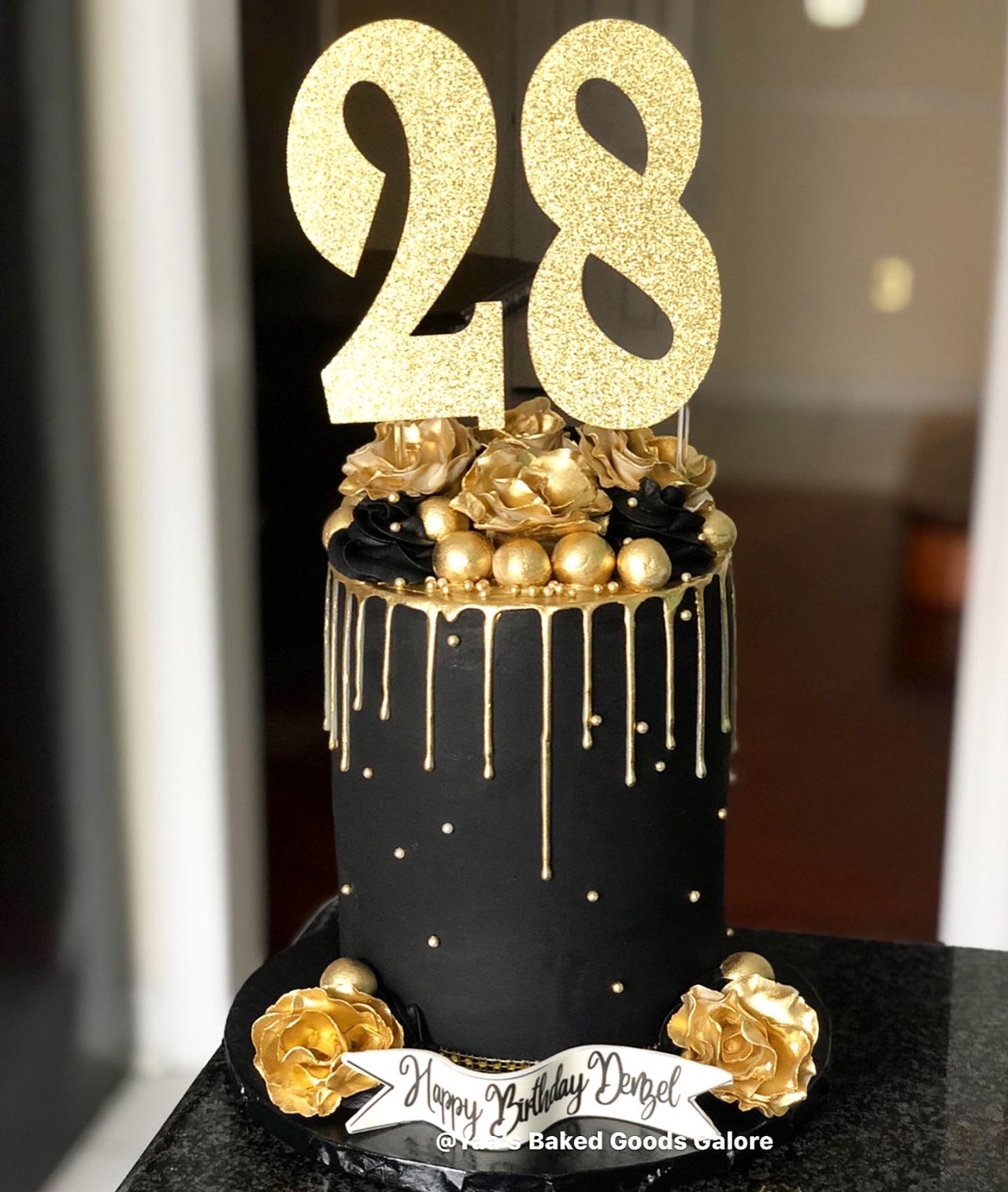 6″ Vanilla and Red Velvet drip cake with handmade fondant flowers, balls, pearls and icing swirls